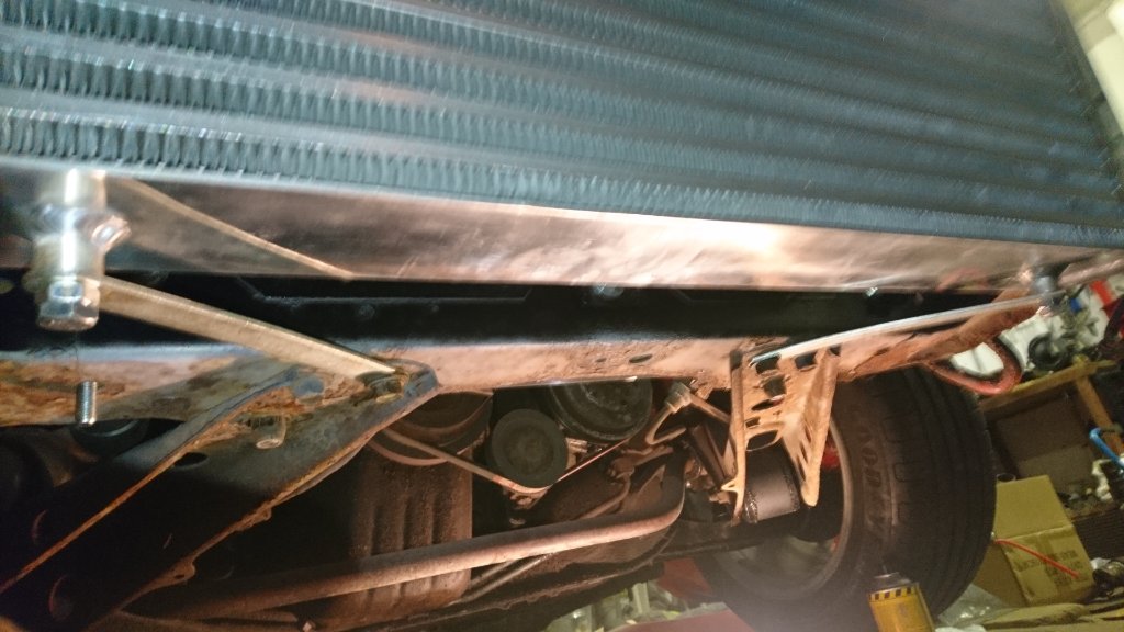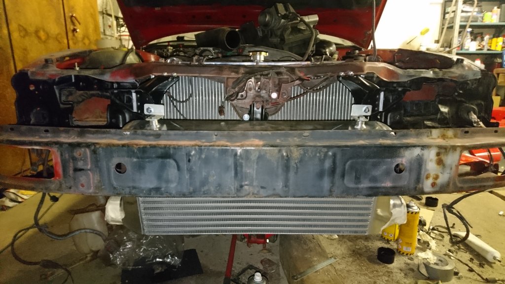 poslední dva dny jsem řešil jak uchytit intercooler od TA Technix tak, aby byl nakloněný a nezavazel příčce předního nárazníku.