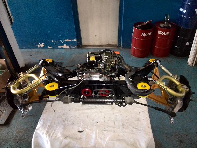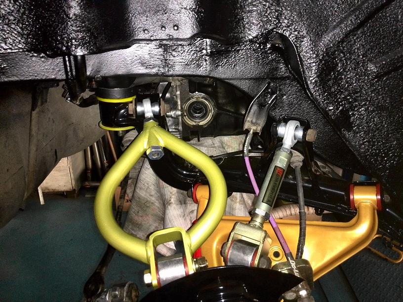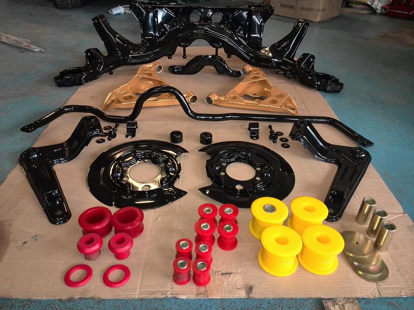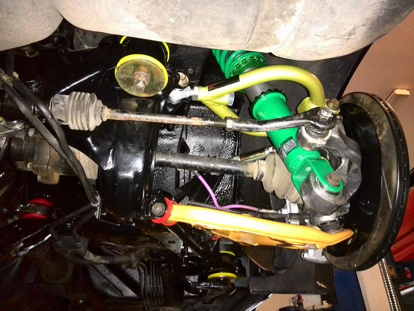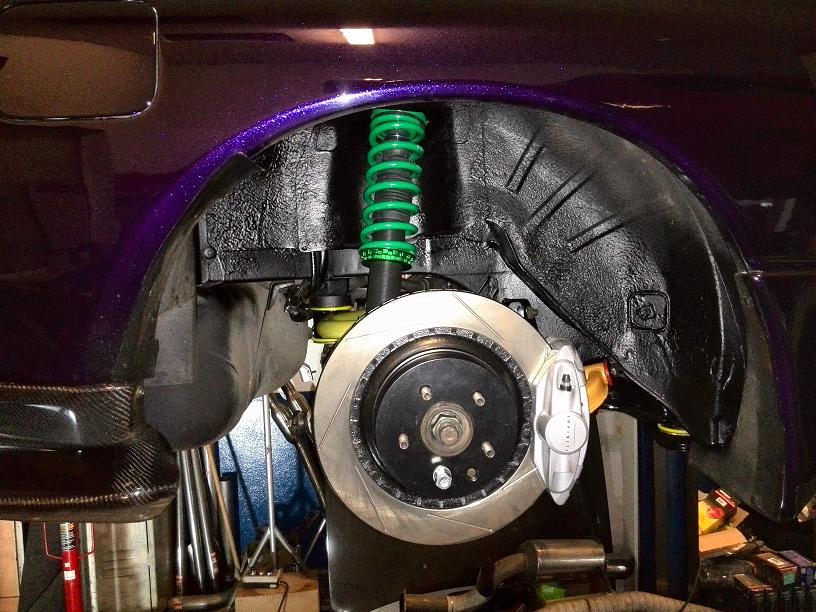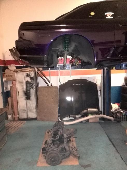 Tak zadní náprava je nalakovaná, smontovaná a nasazena na auto...