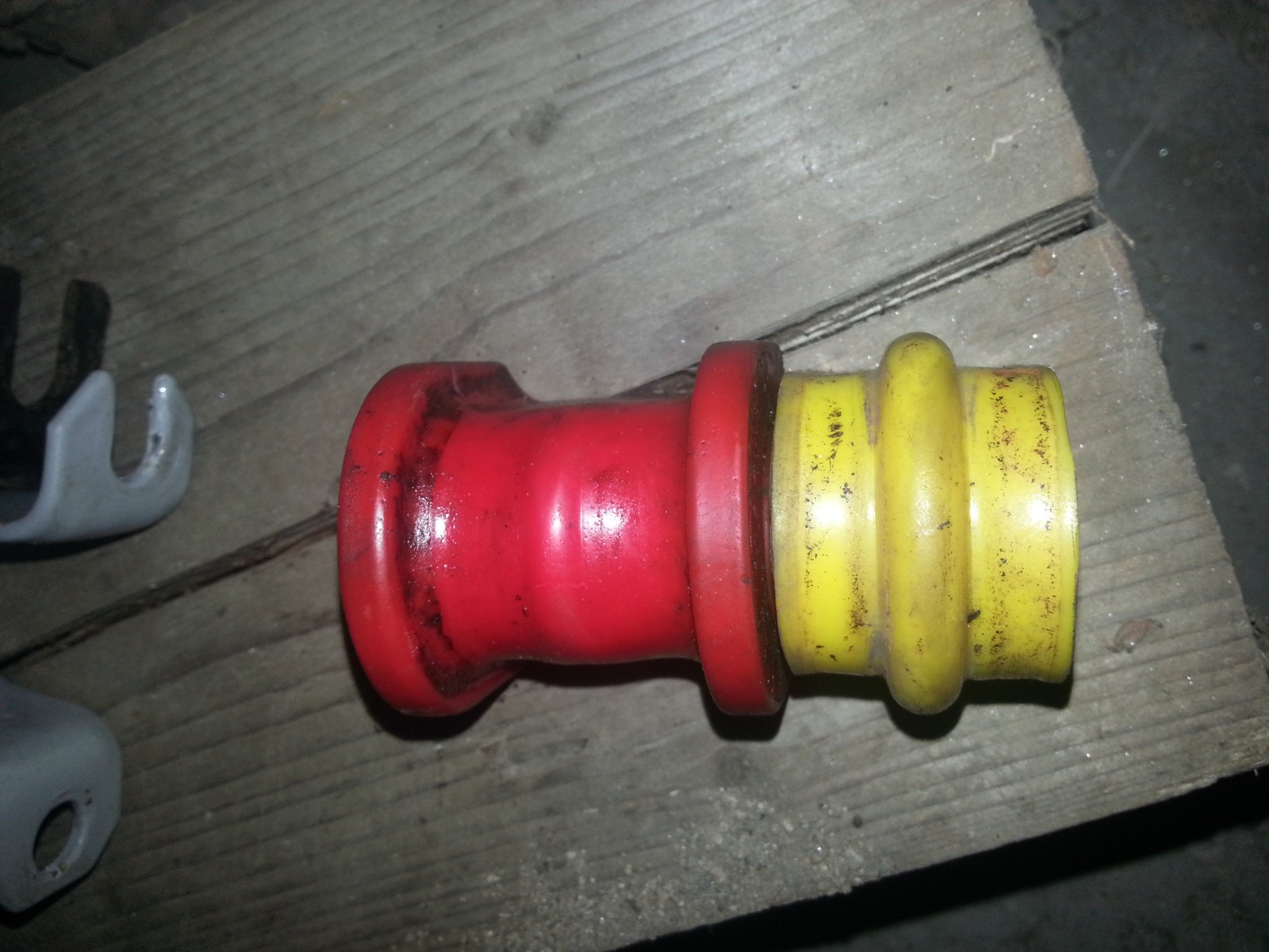 Silverfox: Tady jsem vyfotil S13 a S14 drzak+ silentblok. Sedy drzak a cerveny silentblok je S13kovy na 25mm stabilizator, cerny drzak a zluty silentblok je S14kovy.